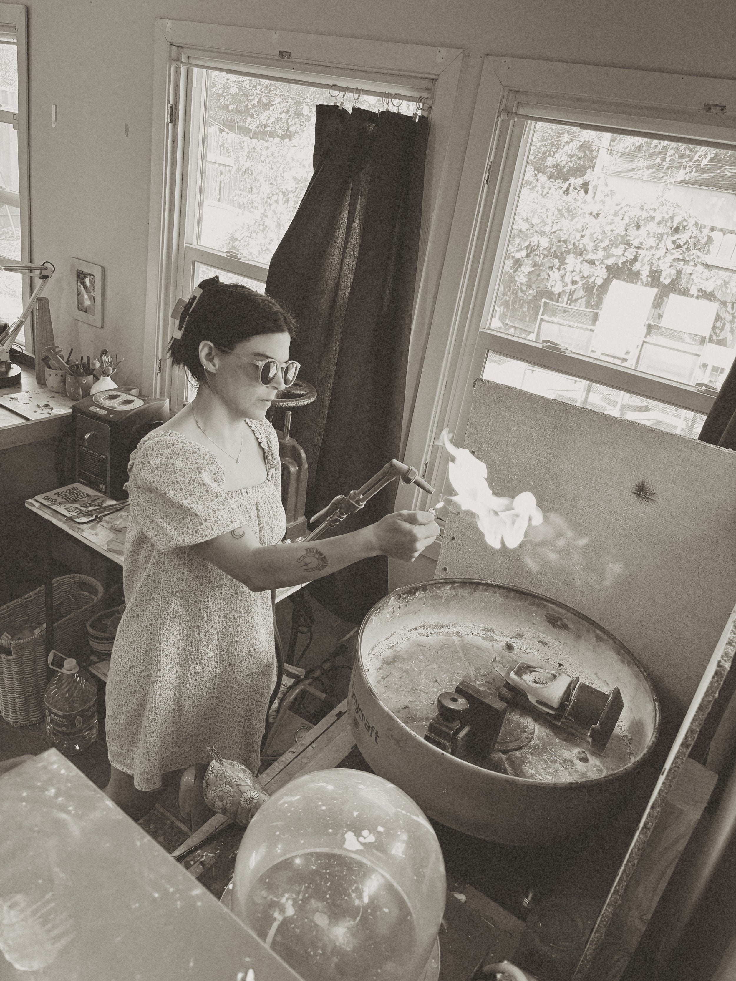 Rainie Brazil is the driving force behind Carve & Cast. Starting as a metalsmith, she was drawn to the alchemy and beautiful transformation of the lost wax process. After meeting her mentor, Larry Baker, in 2017, she was persistent in learning how to cast jewelry. She spent the next few years as his apprentice. In 2019, Carve & Cast was imagined. She strongly believes that everyone should be able to own their own piece of custom jewelry. Made especially for them. So, the jewelry kits were designed. Rainie works out of her own studio in Sacramento, CA. Casting your jewelry and jewelry for independent designers.